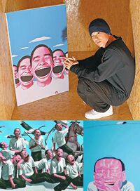 林海峰「是但噏」大口宣傳海報 抄 名畫家岳敏君的舊作《希阿島的屠殺》: